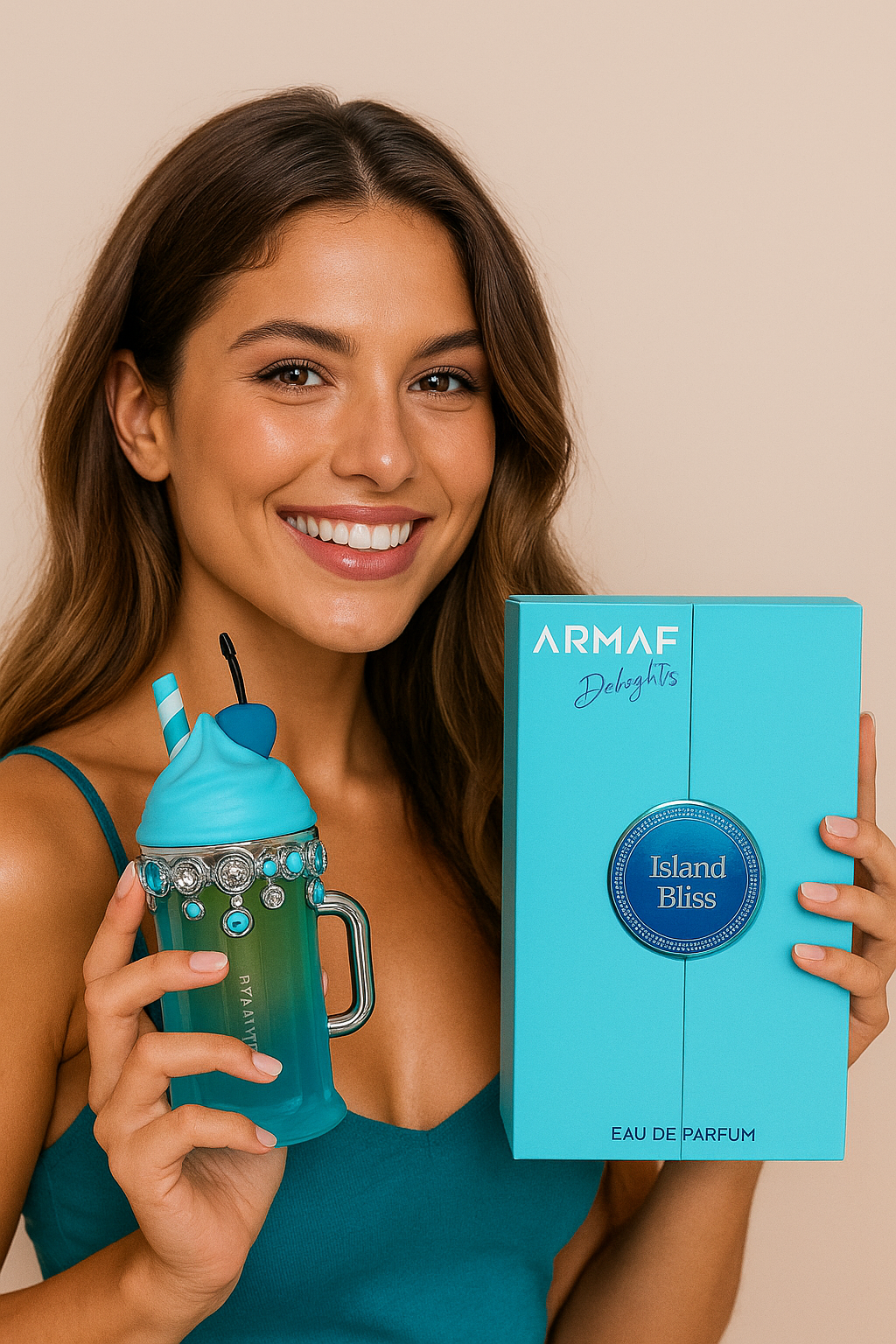 “Island Bliss es mucho más que un perfume, es una experiencia. Con solo un spray, sentirás la frescura de la brisa marina, la dulzura de las frutas tropicales y la ligereza de andar descalza sobre arena cálida. Es el aroma de la libertad, la alegría y la paz .